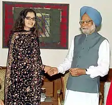Mirza was named one of the "50 Heroes of Asia" by Time in October 2005.[14] In March 2010, The Economic Times named Mirza in its list of the "33 women who made India proud".[15] She was appointed as the UN Women's Goodwill Ambassador for South Asia during the International Day To End Violence Against Women on 25 November 2013.[16] She was named in Time magazine's 2016 list of the 100 most influential people in the world.[17]