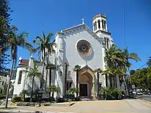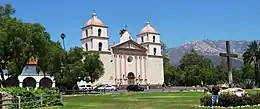 The most dramatic event of the Spanish period was the powerful 1812 earthquake, and tsunami, with an estimated magnitude of 7.1, which destroyed the Mission as well as the rest of the town; water reached as high as present-day Anapamu street, and carried a ship half a mile up Refugio Canyon.[20][21] The Mission was rebuilt by 1820 after the earthquake.[22] Following the earthquake, the Mission fathers chose to rebuild in a grander manner, and it is this construction that survives to the present day, the best-preserved of the California Missions, and still functioning as an active church by the Franciscans. After the Mexican government secularized the missions in the 1830s, the baptismal, marriage, and burial records of other missions were transferred to Santa Barbara, and now found in the Santa Barbara Mission Archive-Library.[23]