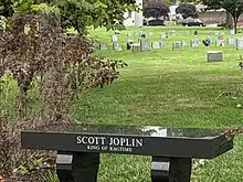 By 1916, Joplin had developed tertiary syphilis,[52][53] but more specifically it likely was neurosyphilis. On February 2, 1917, he was admitted to Manhattan State Hospital, a mental institution.[54] The “King of Ragtime” died there on April 1 of syphilitic dementia at the age of 48[48][55] and was buried in a pauper's grave that remained unmarked for 57 years. His grave, located at St. Michael's Cemetery in East Elmhurst was finally given a marker in 1974, the year The Sting, which showcased his music, won Best Picture at the Oscars.[56]