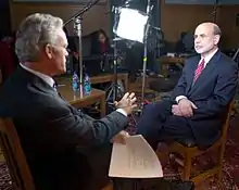 Pelley reported on the economic collapse of 2008-09, on the wars in Afghanistan and Iraq and reporting on climate change from Antarctica and the Arctic. In 2008, Pelley conducted an interview with Federal Reserve Chairman Ben Bernanke. The interview was the first with a Fed Chairman in decades and broke a long-standing Federal Reserve tradition.
