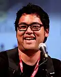 After artist Bryan Lee O'Malley completed the first volume of Scott Pilgrim, his publisher Oni Press contacted producer Marc Platt to propose a film adaptation.[7] O'Malley originally had mixed feelings about a film adaptation, stating that he "expected them to turn it into a full-on action comedy with some actor that [he] hated", though he also "didn't even care", admitting: "I was a starving artist, and I was like, 'Please, just give me some money.'"[8] Universal Studios contracted director Edgar Wright, who had just finished the 2004-released Shaun of the Dead and agreed to adapt the Scott Pilgrim comics.[7][9] Wright had first become interested in making the film when given a pre-release copy of the first graphic novel during the Shaun of the Dead press tour,[10] later saying that "everything that [he] found interesting about the book, and why it felt fresh and unique, was irresistible to adapt."[11] In May 2005, the studio signed Michael Bacall to co-write the screenplay.[9]