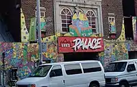 One of the producers, Miles Dale, said that the film is "the biggest movie ever identifiably set in Toronto."[36] The film features notable Toronto locations Casa Loma, St. Michael's College School, Sonic Boom, the Toronto Public Library Wychwood Library, a Goodwill location on St. Clair West, a Second Cup, a Pizza Pizza, Lee's Palace, and Artscape Wychwood Barns.[35][36][37] The production planned to set the film in Toronto because, in Dale's words, "the books are super-specific in their local details" and director Wright wanted to use the imagery from the books, so Universal Studios had no plans to alter the setting.[36] Dale stated that "Bathurst Street is practically the cerebral cortex of Scott Pilgrim".[36] David Fleischer of Torontoist wrote that though films set in New York City show off all the major landmarks, "Scott Pilgrim revels in the simplicity" of everyday locations that are still identifiably Toronto, like the Bathurst/Bloor intersection and a single Pizza Pizza restaurant.[37]