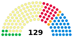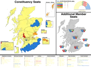 The Scottish Parliament (Scottish Gaelic: Pàrlamaid na h-Alba [ˈpʰaːrˠl̪ˠəmɪtʲ nə ˈhal̪ˠapə]; Scots: Scots Pairlament)[2][3][4] is the devolved, unicameral legislature of Scotland. Located in the Holyrood area of the capital city, Edinburgh, it is frequently referred to by the metonym Holyrood.[5] The Parliament is a democratically elected body comprising 129 members known as Members of the Scottish Parliament (MSPs), elected for five-year terms[6] under the additional member system: 73 MSPs represent individual geographical constituencies elected by the plurality (first-past-the-post) system, while a further 56 are returned as list members from eight additional member regions. Each region elects seven party-list MSPs. Each region elects 15 to 17 MSPs in total.[7] The most recent general election to the Parliament was held on 6 May 2021, with the Scottish National Party winning a plurality.