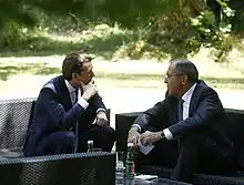 During commemorations and military parades to mark the end of World War II, Kurz visited Belarus on 5 May 2015, followed by a visit to Moscow where he met Russian Foreign Minister Sergei Lavrov. He described the annexation of Crimea and Russia's support of Eastern Ukrainian separatists as "contrary to international law". Kurz explained that a softening of EU sanctions would be declined without prior local improvements of the situation and that the implementation of the Minsk II agreement by Russia was imperative. He added that peace could only be achieved "with and not against Russia". In June 2016, he voiced his support for a proposal made by then-German Foreign Minister Frank-Walter Steinmeier to gradually withdraw sanctions in return for promises kept by Russia regarding the Minsk agreement.[55][56]
