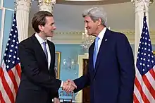 Following the 2013 legislative election, Kurz replaced Michael Spindelegger as head of the Foreign Ministry. In March 2014, the Foreign Ministry also became responsible for integration-related issues. Kurz declared the improvement of Austria's relation with the Western Balkans one of his top policy priorities.[37] "For historical reasons" a committed relation with Israel and the Jewish community were also 'imperative' to Kurz.[38]