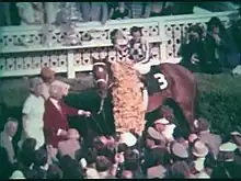 With Feliciano again up, Secretariat returned to the track on July 15 as the 6–5 favorite. He broke poorly, but then rushed past the field on the turn to win by six lengths.[42] On July 31 in an allowance race at Saratoga, Feliciano was replaced by Ron Turcotte, the regular jockey for Meadow Stables. Turcotte had ridden the colt in several morning workouts but had missed his first two starts while recovering from a fall. Secretariat's commanding win as the 2–5 favorite[43] caught the attention of veteran sportswriter, Charles Hatton. He later reported, "You carry an ideal around in your head, and boy, I thought, 'This is it.' I never saw perfection before. I absolutely could not fault him in any way. And neither could the rest of them and that was the amazing thing about it. The body and the head and the eye and the general attitude. It was just incredible. I couldn't believe my eyes, frankly."[37]