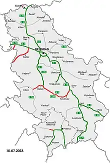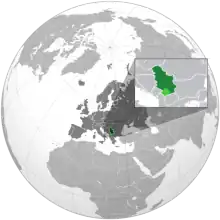 ![]() ![]() Location of Serbia (green) and the disputed territory of Kosovo (light green) in Europe (dark grey) | |