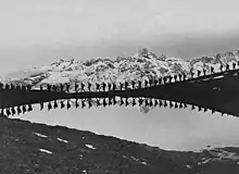 Serbia's casualties accounted for 8% of the total Entente military deaths; 58% (243,600) soldiers of the Serbian army perished in the war.[88] The total number of casualties is placed around 700,000,[89] more than 16% of Serbia's prewar size,[90] and a majority (57%) of its overall male population.[91][92][93] Serbia suffered the biggest casualty rate in World War I.[94]