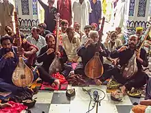 Bhittai is regarded as the greatest Sufi poet of the Sindhi language,[3][11] and the national poet of Sindh.[34] According to the orientalist Annemarie Schimmel, he is "The most outstanding master of popular Sufi poetry in Pakistan."[35] According to Seyyed Hossein Nasr, Bhittai's Risalo has been compared with Rumi's Mathnawi, and Bhittai was "direct emanations of Rūmī's spirituality in the Indian world."[24] Every Thursday evening, Bhittai's poetry is sung by traditional musicians and dervishes at the shrine in a typical ecstatic style. The performance is commonly referred to as Shah jo Rag (Shah's music).[3][19]