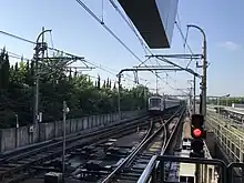 The east extension of Line 2 used to run in an independent pattern between Guanglan Road and Pudong Airport, in which the train would not run west of Guanglan Road and passengers had to transfer at this station. The regular service between East Xujing and Pudong Airport started in April 2019,[46] allowing passengers to access the city center without the extra transfer. The regular service completely replaced the independent east extension service in October of the same year when the four-carriage trainsets special for the service started to be transformed into eight-carriage trainsets for the regular service.[47]