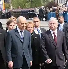 On 7 April 1977, Prime Minister Rabin announced that, in the wake of a foreign currency scandal involving his wife, he would be stepping down prior to the 1977 Knesset election.[64] Peres made himself a candidate to replace him as the new Labor Party leader. Initially, Foreign Minister Yigal Allon also made himself a candidate. However, Allon and Peres reached an agreement that Peres would appoint Allon to any ministerial position that Allon preferred in exchange from his withdrawal of his candidacy. Following Allon's withdrawal, the Labor Party leadership announced on 10 April 1977 that he had chosen to endorse Peres as the party's new leader. On 11 April 1977, the 815-member Central Committee of the party elected Peres by acclamation as the party's new leader.[61][65][66]