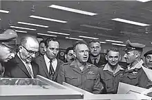 Peres organized a secret Israel Crisis Committee to come up with a rescue plan. When a plan had been made, he met with commander Netanyahu a number of times.[58] During one of their final private meetings, they both examined maps and went over precise details. Peres later said of Netanyahu's explanation, "My impression was one of exactitude and imagination," saying that Netanyahu seemed confident the operation would succeed with almost no losses.[58] Netanyahu left the meeting understanding that Peres would do everything in his power to see that the operation went smoothly.[58] Peres then went unannounced to Moshe Dayan, the former minister of Ddfense, interrupting his dinner with friends in a restaurant, to show him the latest plan to get his opinion. Peres told Dayan of the objections that had been raised by Rabin and Chief of Staff, Mordechai Gur. Dayan dismissed the objections after reviewing the written details: "Shimon," he said, "this is a plan that I support not one hundred percent but one hundred and fifty percent! There has to be a military operation."[57] Peres later got the approval from Gur, who became fully supportive.[57] Peres then took the plan to Rabin, who had been lukewarm and still didn't like the risks, but he reluctantly approved the plan after Peres answered a number of key questions and Rabin learned that the cabinet had also endorsed it.[59]