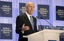 Shimon Peres (/ʃiːˌmoʊn ˈpɛrɛs, -ɛz/;[1][2][3] Hebrew: שמעון פרס [ʃiˌmon ˈpeʁes] ⓘ; born Szymon Perski; 2 August 1923 – 28 September 2016) was an Israeli politician who served as the eighth prime minister of Israel from 1984 to 1986 and from 1995 to 1996 and as the ninth president of Israel from 2007 to 2014. He was a member of twelve cabinets and represented five political parties in a political career spanning 70 years.[4] Peres was elected to the Knesset in November 1959 and except for a three-month-long interregnum in early 2006, served as a member of the Knesset continuously until he was elected president in 2007. Serving in the Knesset for 48 years (with the first uninterrupted stretch lasting more than 46 years), Peres is the longest serving member in the Knesset's history. At the time of his retirement from politics in 2014, he was the world's oldest head of state and was considered the last link to Israel's founding generation.[5]