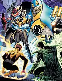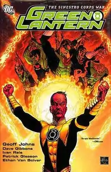 "Sinestro Corps War" is an American comic book crossover event published by DC Comics in its Green Lantern and Green Lantern Corps titles.[1] Written by Geoff Johns and Dave Gibbons and drawn by Ivan Reis, Patrick Gleason, and Ethan Van Sciver, the 11-part saga was originally published between June and December 2007. In addition to the main storyline, four supplemental "Tales of the Sinestro Corps" one-shot specials and a Blue Beetle tie-in issue were concurrently released.