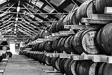 Single malts are typically associated with single malt Scotch, though they are also produced in various other countries.[1] Under the United Kingdom's Scotch Whisky Regulations, a "Single Malt Scotch Whisky" must be made exclusively from malted barley (although the addition of E150A caramel colouring is allowed), must be distilled using pot stills at a single distillery, and must be aged for at least three years in oak casks of a capacity not exceeding 700 litres (150 imperial gallons; 180 US gallons).[2][3]