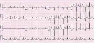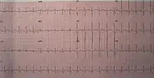 | ECG of a 29-year-old female with sinus tachycardia with a heart rate of 125 bpm | |