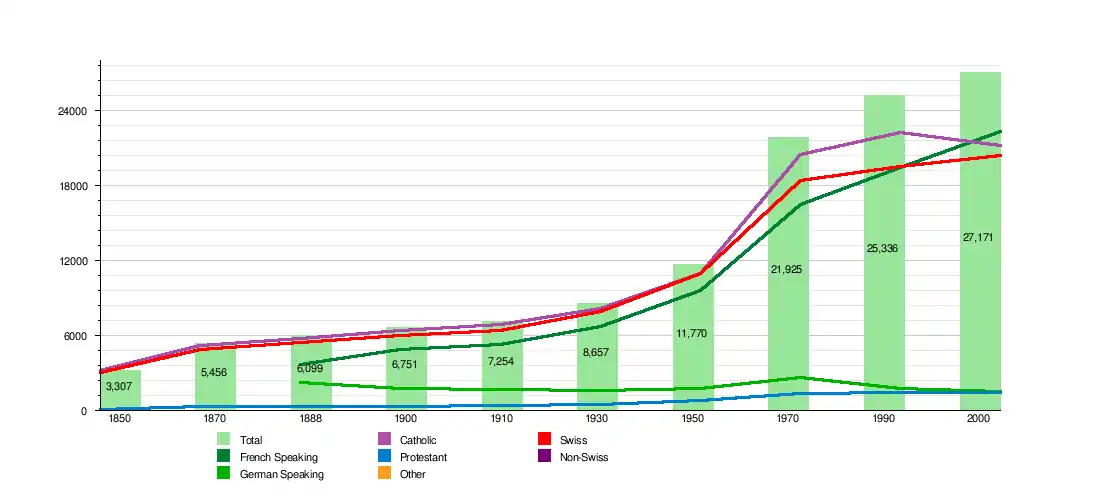 From the 2000 census, 21,220 or 78.1% were Roman Catholic, while 1,198 or 4.4% belonged to the Swiss Reformed Church. Of the rest of the population, there were 212 members of an Orthodox church (or about 0.78% of the population), there were 18 individuals (or about 0.07% of the population) who belonged to the Christian Catholic Church, and there were 453 individuals (or about 1.67% of the population) who belonged to another Christian church. There were 16 individuals (or about 0.06% of the population) who were Jewish, and 1,360 (or about 5.01% of the population) who were Islamic. There were 86 individuals who were Buddhist, 52 individuals who were Hindu and 22 individuals who belonged to another church. 1,371 (or about 5.05% of the population) belonged to no church, are agnostic or atheist, and 1,385 individuals (or about 5.10% of the population) did not answer the question.[23]