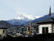 Sion (French: [sjɔ̃] ⓘ; German: Sitten [ˈzɪtn̩] ⓘ; Italian: Seduno; Latin: Sedunum) is a Swiss town, a municipality, and the capital of the canton of Valais and of the district of Sion. As of December 2020 it had a population of 34,978[3] (known as Sédunois(es)).[4]