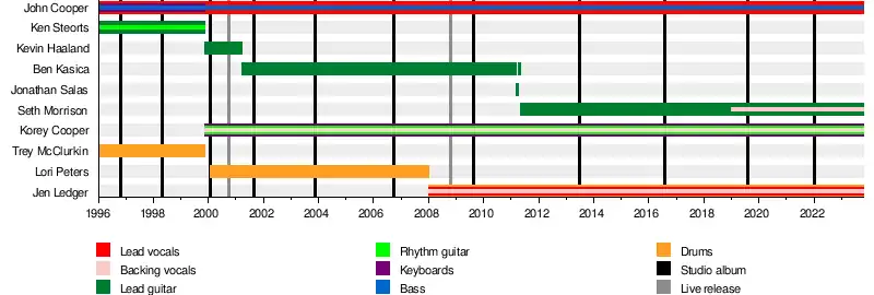 Skillet went through several lineup changes early in their career, leaving founder John Cooper as the only original member remaining in the band. They are known for a relentless touring schedule, which garnered them a top five ranking in the Hardest Working Bands of 2010 by Songkick.com.[4]