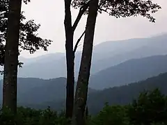 ![]() The Smoky Mountains viewed from atop Mount Le Conte in April 2007 | |