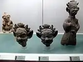 There were many amusements in the cities which could attract audiences rich and poor, such as trained animals performing tricks, cockfighting and caged animal fights between tigers, horse racing, puppet shows, musical performances with dancing, acrobatic feats, and juggling.[131] Wealthy families could afford their own house choirs and five-piece orchestras with bells, drums, flutes, and stringed instruments.[132] Gambling and board games such as liubo also provided entertainment.[133]