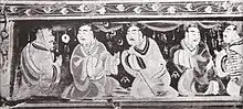 Certain occupations were traditionally reserved for women, while they were also exempted from corvée labor duties.[167] Women were expected to rear children, weave clothes for the family, and perform domestic duties such as cooking; although farming was considered men's work, sometimes women tilled fields alongside their husbands and brothers.[168] Some women formed communal spinning and weaving groups to pool resources together to pay for candles, lamp oil, and heat during night and winter.[169] A successful textile business could employ hundreds of women.[73] Singing and dancing to entertain wealthy patrons were other common professions open for women.[170] When a husband died, sometimes the widow became the sole supporter of her children, and thus had to make a living weaving silk cloths or making straw sandals to sell in the market.[171] Some women also turned to the humble profession of sorcery for income.[172] Other more fortunate women could become renowned medical physicians who provided services to the families of high officials and nobility.[173] Some wealthy women engaged in luxury trade, such as one who frequently sold pearls to a princess.[174] Some even aided in their husband's business decisions.[175] Female merchants dressed in silk clothes which rivaled even female nobles' attire were considered immoral compared to the ideal woman weaver.[175]