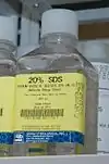 SDS is used in cleaning procedures,[11] and is commonly used as a component for lysing cells during RNA extraction and/or DNA extraction, and for denaturing proteins in preparation for electrophoresis in the SDS-PAGE technique.[12]