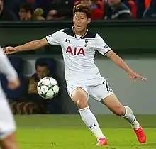 Son Heung-min (Korean: 손흥민; Korean pronunciation: [son.ɣɯŋ.min]; born 8 July 1992) is a South Korean professional footballer who plays as a forward for and captains both Premier League club Tottenham Hotspur and the South Korea national team.[3] Considered one of the best players in the world and widely regarded as the greatest Asian footballer of all time, he is known for his explosive speed, finishing, two-footedness and ability to link play.[6][7]