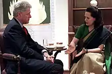 She contested Lok Sabha elections from Bellary, Karnataka and Amethi, Uttar Pradesh in 1999. She won both seats but chose to represent Amethi.[45] In Bellary, she had defeated veteran BJP leader, Sushma Swaraj.[46][47]