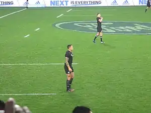 Williams returned to the All Blacks against Samoa at Eden Park in a solid performance, where he scored a try in a 78–0 win.[196] A week later, he started at inside centre for the All Blacks in their victory against the British and Irish Lions in the first test. However, a week later in the second test, Williams became the first All Black to be sent off in 50 years after Colin Meads was sent off in 1967, and was also the first ever to be sent off in New Zealand, for shoulder charging Anthony Watson to the head.[197] The All Blacks went on to lose the test 24–21. After serving his four-match suspension for his red card, Williams returned for the first Bledisloe Cup match of the year, where he scored a try in the All Blacks' record 54–34 victory.[198] Williams started in all New Zealand's Rugby Championship matches, with the All Blacks winning all six, including a 57–0 victory over South Africa in Auckland.