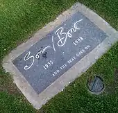At Mary's request, Cher gave a eulogy at Sonny's funeral. He was buried at Desert Memorial Park in Cathedral City, California.[32][33] The epitaph on Bono's headstone reads "AND THE BEAT GOES ON".[34]
