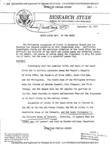 2012 marked the increased militarization of the islands. The ROC started the construction of an antenna tower and runway on the Taiping island in February, allowing the island to accommodate various military aircraft.[43] On the Vietnam occupied Sand Cay and West Reef islands, upgrades and land reclamation projects were also started at this time.[44] In April, the PRC took the Scarborough Shoal as a response to the Philippine navy's actions of stopping Chinese fishing boats in the area.[45][46]