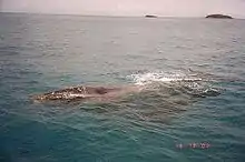 Whaling records for the hemisphere include a whaling ground in the central northern Indian Ocean[47] and recent sightings among near-equatorial regions. If the sighting off Kiribati was truly of E. australis, this species may have crossed the Equator on irregular occasions and their original distributions might have been much broader and more northerly distributed than is currently believed.[46][48] A stranding of a 21.3 m (71 feet) right whale at Gajana, northwestern India in November 1944 was reported, but the true identity of this animal is unclear.[49][50]
