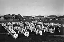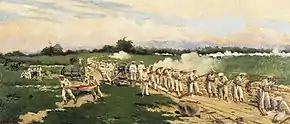 Antonio Cánovas del Castillo, the architect of Spain's Restoration constitution and the prime minister at the time, ordered General Arsenio Martínez-Campos, a distinguished veteran of the war against the previous uprising in Cuba, to quell the revolt. Campos's reluctance to accept his new assignment and his method of containing the revolt to the province of Oriente earned him criticism in the Spanish press.[47] The mounting pressure forced Cánovas to replace General Campos with General Valeriano Weyler, a soldier who had experience in quelling rebellions in overseas provinces and the Spanish metropole. Weyler deprived the insurgency of weaponry, supplies, and assistance by ordering the residents of some Cuban districts to move to reconcentration areas near the military headquarters.[47] This strategy was effective in slowing the spread of rebellion. In the United States, this fueled the fire of anti-Spanish propaganda.[48] In a political speech President William McKinley used this to ram Spanish actions against armed rebels. He even said this "was not civilized warfare" but "extermination".[49][50]