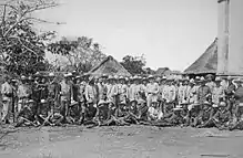 Commodore Dewey transported Emilio Aguinaldo, a Filipino leader who led rebellion against Spanish rule in the Philippines in 1896, from exile in Hong Kong to the Philippines to rally more Filipinos against the Spanish colonial government.[113] By June 9, Aguinaldo's forces controlled the provinces of Bulacan, Cavite, Laguna, Batangas, Bataan, Zambales, Pampanga, Pangasinan, and Mindoro, and had laid siege to Manila.[114] On June 12, Aguinaldo proclaimed the independence of the Philippines.[115][116]