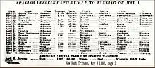 The first battle between American and Spanish forces was at Manila Bay where, on May 1, Commodore George Dewey, commanding the U.S. Navy's Asiatic Squadron aboard USS Olympia, in a matter of hours defeated a Spanish squadron under Admiral Patricio Montojo.[lower-alpha 8] Dewey managed this with only nine wounded.[104][105] With the German seizure of Qingdao in 1897, Dewey's squadron had become the only naval force in the Far East without a local base of its own, and was beset with coal and ammunition problems.[106] Despite these problems, the Asiatic Squadron destroyed the Spanish fleet and captured Manila's harbor.[106]