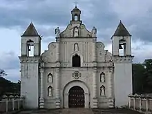 At the time of the conquest, Q'alel[nb 3] was a ruler of the Ch'orti' Maya of what is now western Honduras.[119] Q'alel was the lord of Copán, a town near modern Rincón del Jicaque, which should not be confused with the archaeological site.[120] Q'alel fortified Copán with a strong wooden palisade and surrounding moat, and gathered an army of 30,000 warriors to drive out the Spanish.[120] The Spanish assault came from the direction of Guatemala, after Ch'orti' attacks on Spanish settlers there. In early 1530, Pedro de Alvarado sent a detachment of Spanish troops with indigenous allies to put down the resistance on his borders,[121] under the command of Hernando de Chávez, Jorge de Bocanegra and Pedro Amalín.[122] Q'alel rejected messengers demanding his submission. The Ch'orti' fortifications were strong enough to hold the Spanish and their indigenous auxiliaries at bay for several days, but eventually they managed to cross the moat and breach the palisade, routing the defenders.[120] Ch'orti' resistance was crushed by the following year,[123] and most of the fighting was over by April 1531.[120]