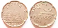 The Pts 50 coins issued between 1990 and 2000 were the first that featured the Spanish flower shape.