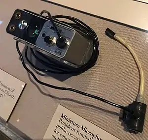 McKay stated that he believed Kimball could still serve as an apostle even if he underwent a complete laryngectomy and advised him to go forward with the procedure. Martin subsequently surgically removed one of Kimball's vocal cords and half of the other, leaving him barely able to speak above a hoarse whisper.[61] After several weeks of enforced silence, Kimball slowly recovered, and by November 1957, his physician allowed him to resume speaking in public.[62] Kimball's voice remained raspy throughout the rest of his life, and he usually wore an ear-mounted microphone to help magnify his voice, even when he was speaking at normal microphone-equipped pulpits.[4]
