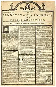 Pennsylvania Journal, October 31, 1765, issue, with black borders, protesting the stamp act