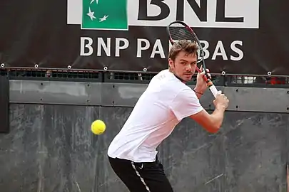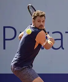 Stanislas Wawrinka (French: [stanislas vavʁiŋka];[lower-alpha 1] born 28 March 1985) is a Swiss professional tennis player. He reached a career-high Association of Tennis Professionals (ATP) singles ranking of world No. 3 for the first time on 27 January 2014.[5] His career highlights include three Grand Slam titles, those being the 2014 Australian Open, 2015 French Open and 2016 US Open, where he defeated the world No. 1 player in the final on all three occasions. Other achievements include reaching the final of the 2017 French Open, winning an ATP Tour Masters 1000 title at the 2014 Monte-Carlo Masters, and reaching three other Masters finals (at 2008 Rome, 2013 Madrid and 2017 Indian Wells). Representing Switzerland, Wawrinka won gold in doubles at the 2008 Beijing Olympics with teammate Roger Federer, and was also pivotal in the Swiss team's victory at the 2014 Davis Cup.