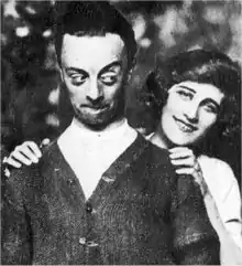 Holloway and Queenie had four children: Joan, born on Holloway's 24th birthday in 1914, Patricia (b. 1920), John (1925–2013) and Mary (b. 1928).[106] Upon the death of her mother, Queenie inherited some property in Southampton Row and relied on the rents from the property for her income.[107] During the First World War, while Holloway was away fighting in France, Queenie began to have financial trouble, as the tenants failed to pay their rent. Out of desperation, she approached several loan sharks, incurring a large debt about which Holloway knew nothing.[107] She also started to drink heavily as the pressures from the war and of supporting her daughter took their toll.[107] On Holloway's return from the war, the debt was paid off and they moved to Hampstead, West London.[108] By the late 1920s, Holloway found himself in financial difficulties with the British tax authorities and was briefly declared bankrupt.[109][110] In the 1930s, Holloway and Queenie moved to Bayswater[111] and remained there until Queenie's death in 1937 at the age of 45, from cirrhosis of the liver.[112][113] Of the children from this first marriage, John worked as an engineer in an electrics company, and Mary worked for British Petroleum for many years.[114]