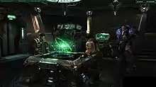 StarCraft II: Wings of Liberty features the return of the three species from the original game: Protoss, Terran, and Zerg.[1] In the Terran campaign, the original StarCraft briefing room is replaced with an interactive version of the battlecruiser Hyperion, with Jim Raynor, a bitter and hard-drinking mercenary captain, as the central character. In a departure from previous Blizzard games, the campaign is non-linear, with Raynor taking jobs for money and using that money to buy additional units and upgrades. Although each playthrough will vary, the result remains consistent, keeping the storyline linear. Blizzard's Vice President Rob Pardo stressed that each campaign will function very differently.[9] The Terran campaign, Wings of Liberty, places players in a mercenary-style campaign, as Terran rebel group Raynor's Raiders raise funds by taking assignments from outside groups. The second release, Heart of the Swarm, is Zerg-focused and has role-playing elements. Sarah Kerrigan is the focus of the campaign, and the story revolves around the possibility of her redemption. The Protoss-themed Legacy of the Void is the third expansion, with the Protoss Artanis attempting to reunite the Protoss tribes in order to stop Amon, a fallen Xel'Naga.