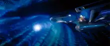 During the rewrite of the final scenes, the studio executives clashed with Roddenberry about the script's ending, believing that the concept of a living machine was too far-fetched. The executives consulted Asimov: if the writer decided a sentient machine was plausible, the ending could stay. Asimov loved the ending, but made one small suggestion; he felt that the use of the word "wormhole" was incorrect, and that the anomaly that the Enterprise found itself in would be more accurately called a "temporal tunnel".[15]: 155–6