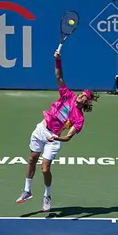 Tsitsipas had his second big breakthrough of the year in the lead up to the US Open. After reaching the semifinals in Washington,[53] he reached his second final of the season and first career Masters final at the Canadian Open. During the tournament, he became the youngest player to record four top ten wins in a single event, defeating No. 8 Dominic Thiem, No. 10 Novak Djokovic, No. 3 Alexander Zverev, and No. 6 Kevin Anderson in succession. He also saved match points in the latter two matches.[54][55] Tsitsipas lost the final to Nadal on his 20th birthday in a closer match than their first encounter. He also climbed to No. 15 in the world.[55][56]