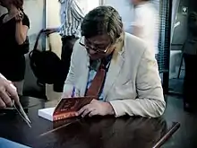In February 2008, Fry began presenting podcasts entitled Stephen Fry's Podgrams, in which he recounts his life and recent experiences.[73] In July 2008, he appeared as himself in I Love Stephen Fry, an Afternoon Play for Radio 4 written by former Fry and Laurie script editor Jon Canter.[74] On 7 May 2008, Fry gave a speech as part of a series of BBC lectures on the future of public service broadcasting in the United Kingdom,[75] which he later recorded for a podcast.[76] His six-part travel series Stephen Fry in America began on BBC One in October 2008, and saw him travel to each of the 50 US states.[53] In the same year, he narrated the nature documentaries Spectacled Bears: Shadow of the Forest for the BBC Natural World series. In the 2009 television series Last Chance to See, Fry and zoologist Mark Carwardine sought out endangered species, some of which had been featured in Douglas Adams' and Carwardine's 1990 book and radio series of the same name.[77] Fry's voice has been featured in a number of video games, including an appearance as Reaver, an amoral supporting character in Lionhead Studios games Fable II (2008) and Fable III (2010), and as the narrator of the LittleBigPlanet series.[78][79] He also narrates a section of Bungie's Destiny 2 (2017) expansion Warmind as the "Concierge"; an AI that, when interacted with at certain points, will give the player background information on Bray Exoscience.[80] In 2008, Fry's narration for Bond's Paddington Bear story More About Paddington (1959) saw him receive the Audie Award for Young Listeners' Title from the Audio Publishers Association in the U.S.[81]
