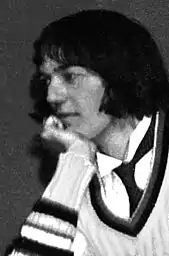 Fry moved to Norfolk College of Arts and Technology, where, after two years in the sixth form studying English, French, and History of Art,[27] he ultimately failed his A-Levels, not turning up for his English and French papers.[28] Over the summer, Fry absconded with a credit card stolen from a family friend.[29] He had taken a coat when leaving a pub, planning to spend the night sleeping rough, but had then discovered the card in a pocket.[30] He was arrested in Swindon and, as a result, spent three months in Pucklechurch Prison on remand. Following his release, he resumed his education at City College Norwich, promising administrators that he would study rigorously and sit the Cambridge entrance exams. In the summer of 1977, he passed two A-Levels in English and French, with grades of A and B. He also received a grade A in an alternative O-Level in the Study of Art[31] and scored a distinction in an S-Level paper in English. Having successfully passed the entrance exams in autumn 1977, Fry was offered a scholarship to Queens' College, Cambridge, for matriculation in autumn 1978, briefly teaching at Cundall Manor School,[32] a preparatory school in North Yorkshire, before taking his place.[33] At Cambridge, he joined the Footlights, appeared on University Challenge,[34] and read for a degree in English Literature, graduating with upper second-class honours.[35][36] Fry also met his future comedy collaborator Hugh Laurie (through their mutual friend Emma Thompson) at Cambridge and starred alongside him in the Footlights.[37]