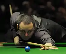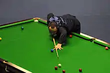 Maguire and teammate John Higgins lost in the final of the 2015 Snooker World Cup to Chinese teenagers Zhou Yuelong and Yan Bingtao.[90] Maguire then reached the semi-finals of the first ranking event of the year by thrashing Judd Trump 5–1 at the Australian Goldfields Open, but he lost 1–6 to Martin Gould.[91][92] He began his fourth-round match against Neil Robertson with a 118 break, but it was the only frame he could win in a 1–6 defeat.[93] He was knocked out in the quarter-finals of the German Masters 1–5 by Graeme Dott and the first round of both the Welsh Open (3–4 to Martin O'Donnell) and the World Grand Prix (0–4 to Higgins).[94] He failed to qualify for the PTC Finals after finishing 42nd on the European Order of Merit.[95] This meant that Maguire needed a strong run at the China Open to avoid having to qualify for the 2016 World Championship at the end of the season. He achieved this with four wins to the China Cup semi-finals, but he was then whitewashed 6–0 by Trump.[96][97] Despite his automatic qualification for the World Championship, Maguire stated that he felt embarrassed at being unable to motivate himself for the event, after losing 7–10 to Alan McManus in the first round.[98] His 18th-place campaign was the first time that Maguire finished outside of the top 16 since 2004.[99]