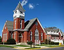 The town surveyed its older buildings to establish architectural significance and to determine those that contributed to the town's historic center. The Newtown–Stephensburg Historic District was listed on the National Register of Historic Places in August 1992.[28] Among the contributing properties to the historic district are numerous 18th-century buildings, 19th-and-early-20th century homes and businesses, cemeteries, churches, and a school complex.[28]