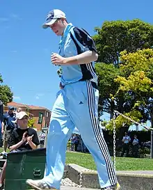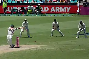 Following the T20 came the 3-match ODI series. In the first ODI at Sharjah Cricket Stadium, Smith made his first ODI century scoring 101 runs off 118 balls to push the visitors to a 1–0 lead in the series.[109] In the second ODI he made 12 runs and in the third and final ODI he made 77 runs off 105 balls to win the ODI match by 1 run. However, during the match, Steve Smith's catch on Fawad Alam questioned whether his catch was within the ICC laws. The incident occurred when in the 18th over of Pakistan's chase of 231 where Xavier Doherty delivered the ball and before Fawad made contact with his paddle sweep, Smith had moved from first slip towards leg slip to intercept the shot. The legality of the catch continued to be the main talking point after the ODI Series and afterwards ICC made a press statement stating that: "As long as the movement of a close catching fielder is in response to the striker's actions (the shot he/she is about to play or shaping to play), then movement is permitted before the ball reaches the striker. On the day, if umpires believe any form of significant movement is unfair (in an attempt to deceive the batsman), then the Law still applies."[110][111] The win saw Australia rise back to number one in the ICC ODI Rankings and Steve Smith was made man of the series for his batting performances.[112]